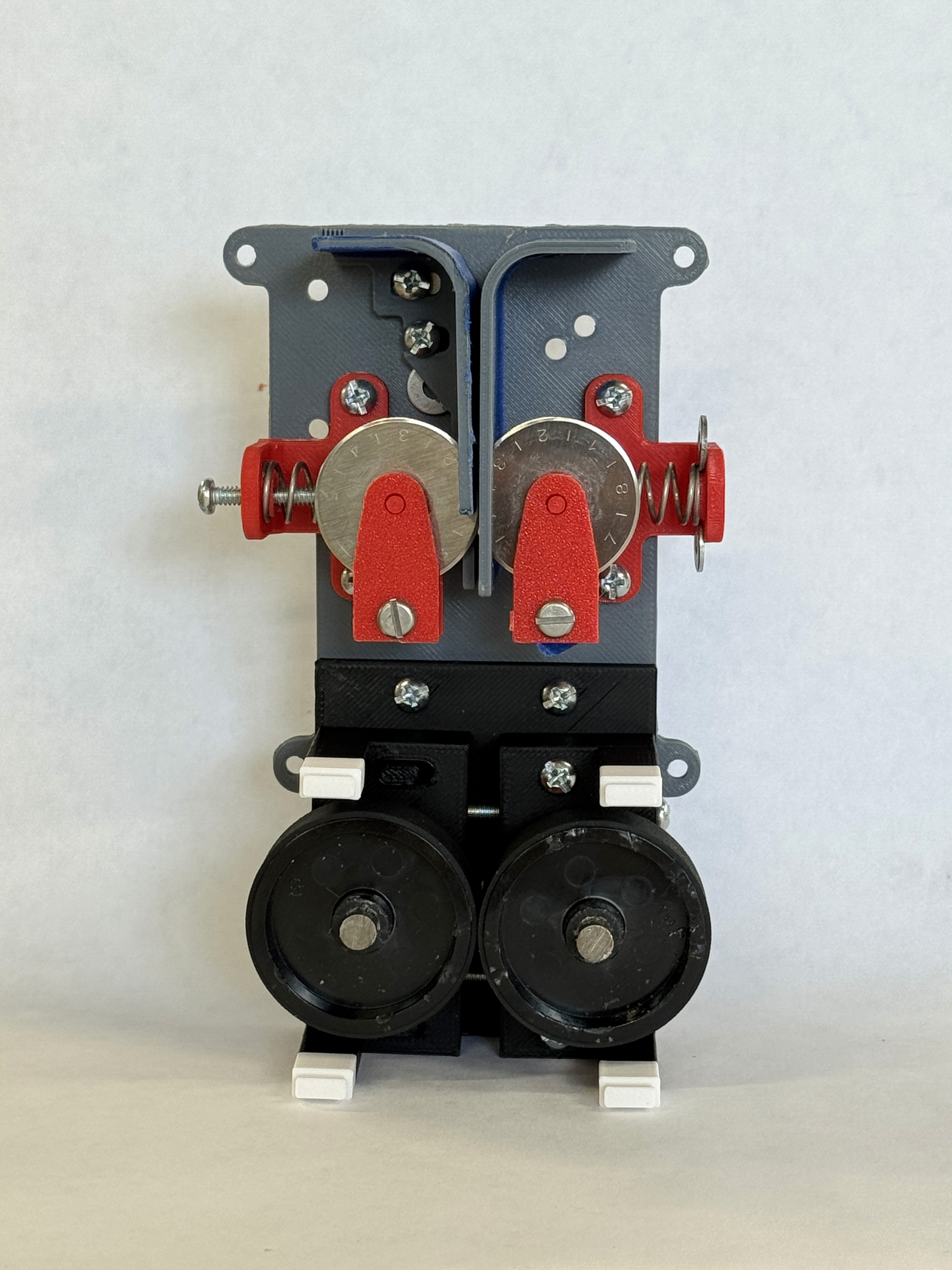 Demonstration of cutting mechanism with circular blades and snag mechanism with rubber wheels.