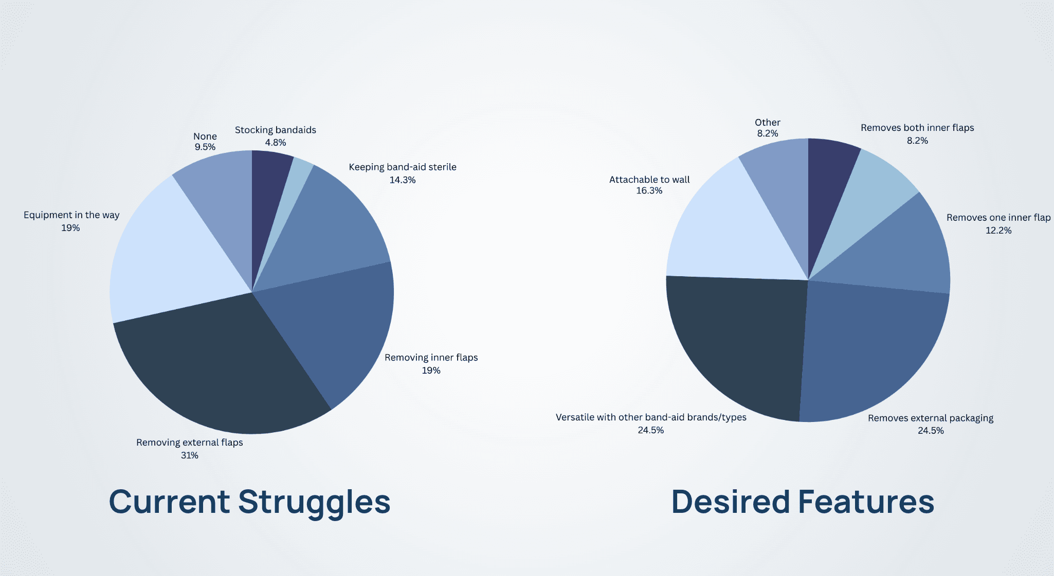 Data across 50+ LPNs, RNs, Medical Assistants was gathered to determine how an assistive device may help with their current work flow. Majority of individuals found utility to having an assistive device help them open band-aids during vaccination. However, some cautions individuals held related to inconsistencies of this potential device slowing down the process. These findings are summarized below.