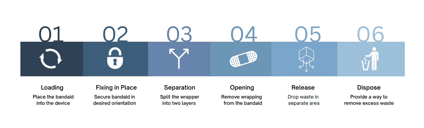 By breaking down the process of opening a bandaid, we were able to identify key steps in the process. The actions are noted below.